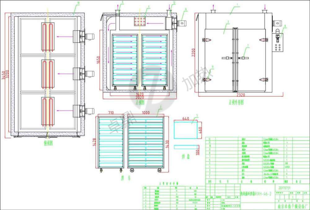 8、 本廠出廠烘車,烘盤尺寸統一,可以互換。